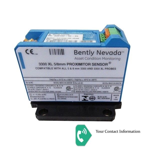 3300 XL Proximitor Sensor 50 =Total Length and Mounting Option : 5.0 meters (16.4 feet) system length, panel mount 05 =Agency Approval Option : CSA, ATEX, IECEx Approvals