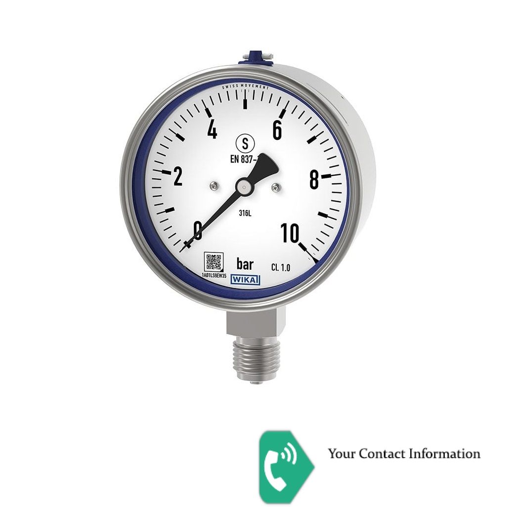 Bourdon tube pressure gauge, stainless steel3 Dial: 100