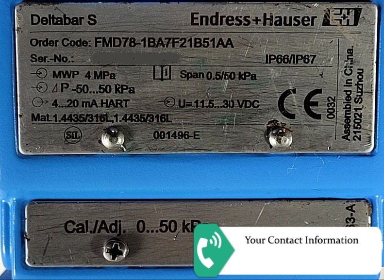 Nominal Range; Cell Material; PN: 7F = 500mbar/50kPa/7.5psi; 316L; 160bar/ 16MPa/2400psi