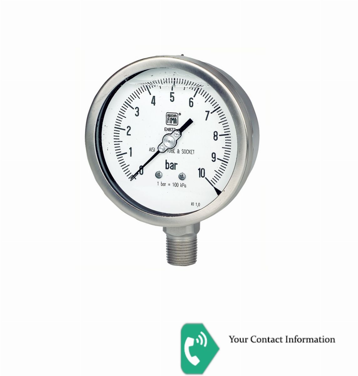 MGS18 DN100-150/Bourdon tube pressure gauges all stainless steel construction DS 4”, 6” (100-150mm) pressure gauge DIA 100/RANGE 0-250BAR /BACK CONNECTION/PROCESS CONNEC/1.2 NPT-M