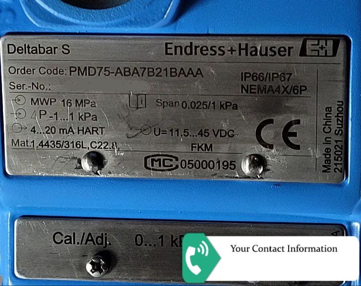 • Part Number: PMD75-ABA7B21BAAA Deltabar S