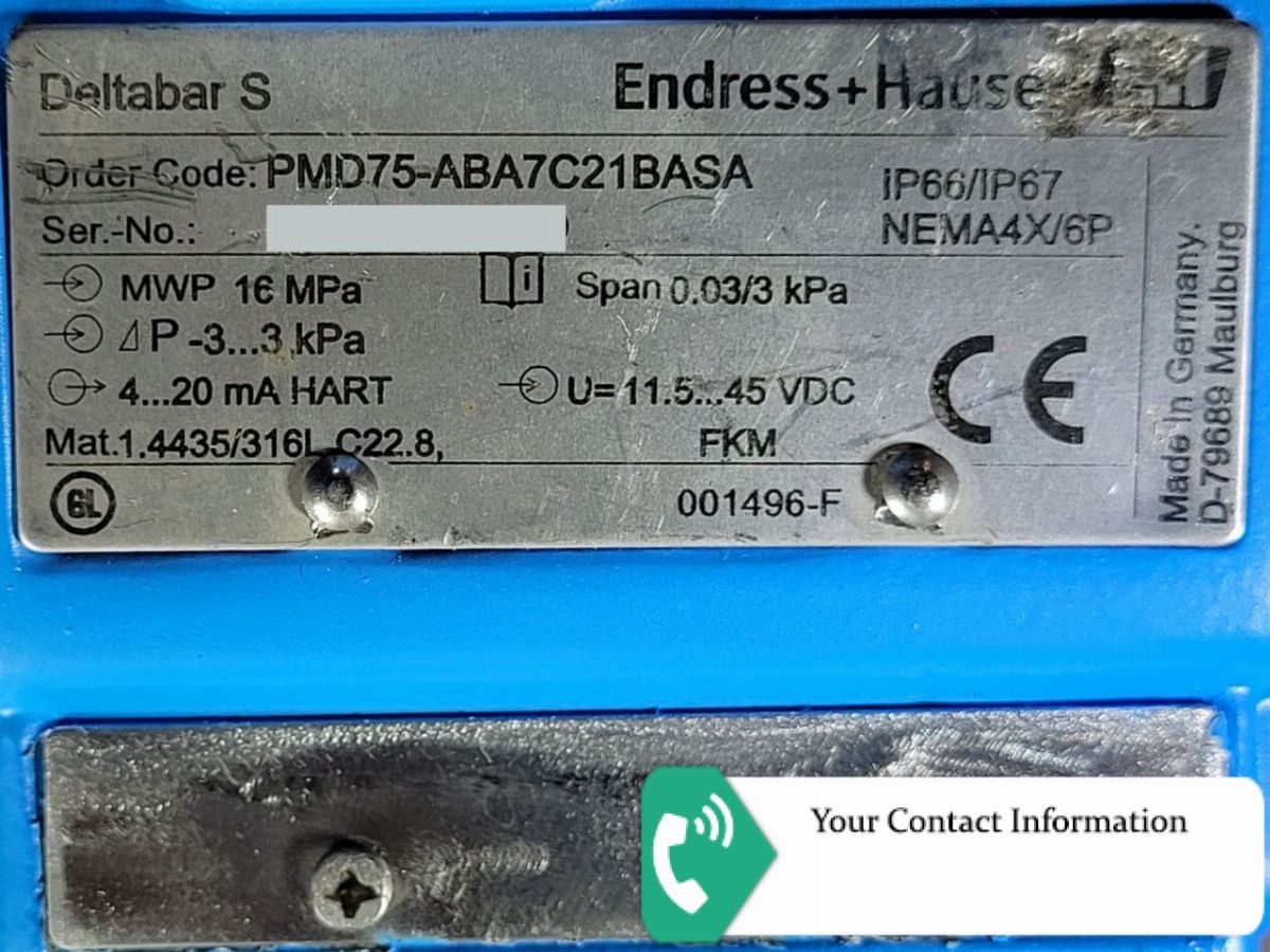Nominal Range; Cell Material; PN: 7C = 30mbar/3kPa/0.45psi; 316L; 160bar/ 16MPa/2400psi