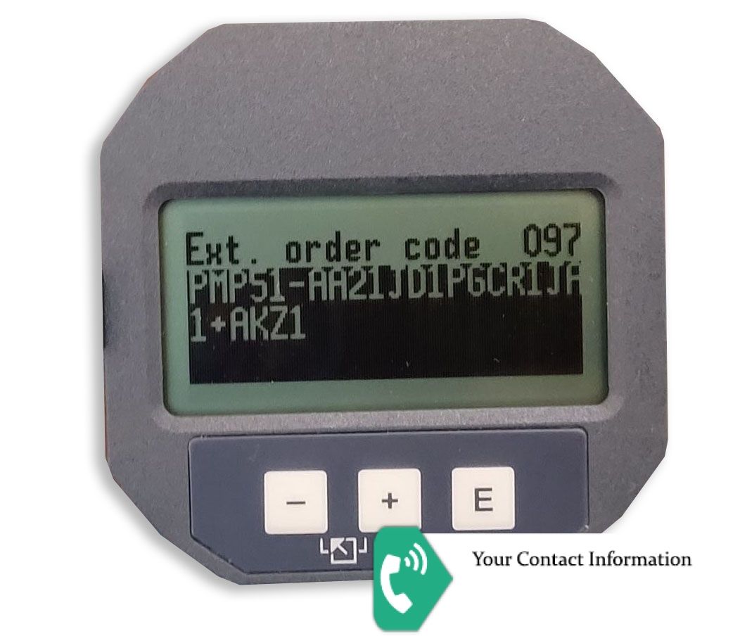 PMP51-AA21JD1PGCR1JA1+AKZ1 Approval: AA = Non-hazardous area Output: 2 = 4-20mA HART Display, Operation: 1 = LCD, push button on display/electronics Housing: J = F31 Alu, glass window Electrical Connection: D = Thread NPT1/2, IP66/68 NEMA4X/6P Sensor Range: 1P = 10bar/1MPa/150psi gauge, 100mH2O/333ftH2O/4000inH2O overload: 40bar/4MPa/600psi Reference Accuracy: G = Standard Calibration; Unit: C = Sensor range; kPa/MPa Process Connection: R1J = Thread ANSI FNPT1/2, 316L Membrane Material: A = 316L Fill Fluid: 1 = Silicone oil Additional Operation Language: AK = Chinese simplified Marking: Z1 = Tagging (TAG), see additional spec