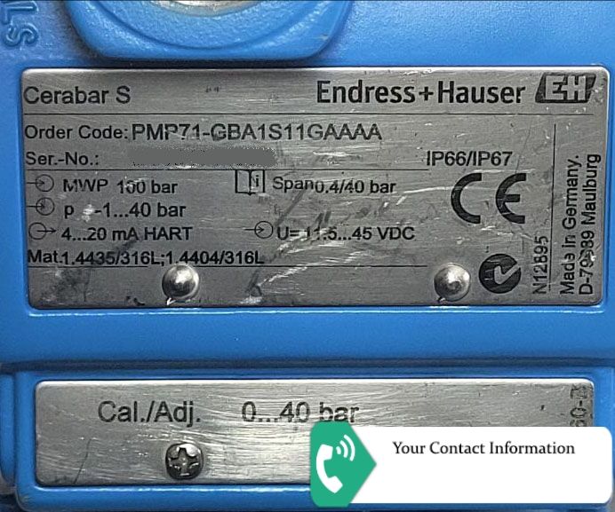 Sensor Range; Sensor Overload Limit: 2U = 100bar/10MPa/1500psi abs; 400bar/40MPa/6000psi