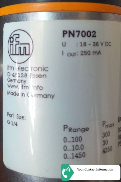 IFM PN7002 Pressure sensor with display Output signal = switching signal; IO-Link; (configurable) Measuring range = 0...100 bar Electrical design = PNP/NPN Output function = normally open / normally closed; (parameterisable)