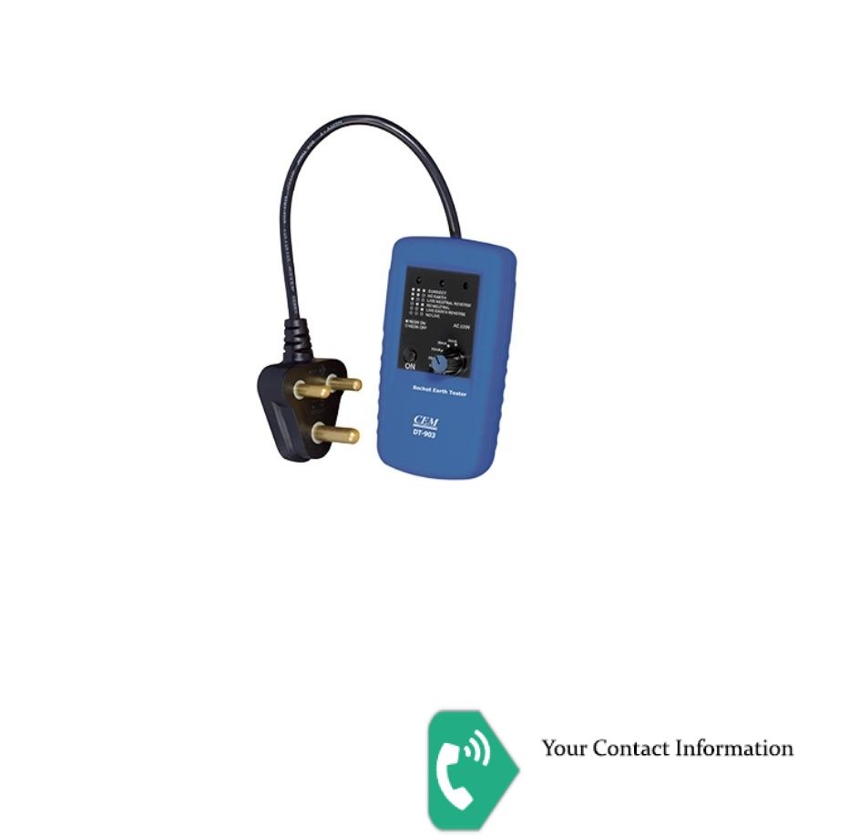 Socket Polarity and Earth Leakage Tester DT-903 Socket Polarity and Earth Leakage Tester tests 3 wire 220V AC outlets and earth leakage circuit breakers(ELCB). Power supply From unit under test Electrical safety IEC61010/EN61010; IEC61557-7/EN61557-7 Protection level CATIII 600V Type of protection IP40 Operating temperature 0ºC to 40ºC