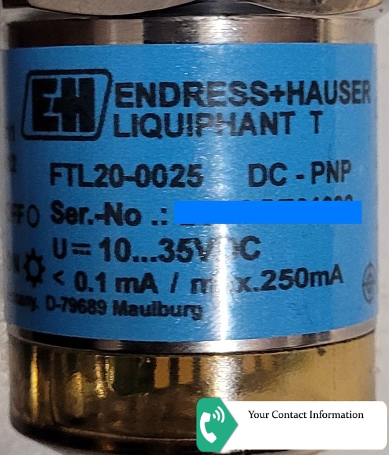 FTL20-0025 Approval: 0 = Non-hazardous area, WHG, leakage-detection Process Connection: 0 = Thread ISO228 G1/2, 316L Switch Output: 2 = 3-wire PNP 10-35VDC Application; Cable Entry: 5 = 100oC; plug M12, IP67
