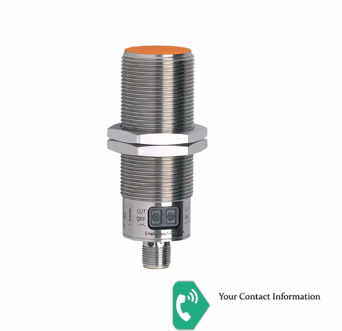 Capacitive sensor Output function = make contact / break contact; (to be selected) / Switching distance [mm] = 8 / Dimensions [mm] M30 x 1.5 / L = 90 / IFM CAPACITIVE SENSOR, 8MM SENSING RANGE. M30X1.5 BARREL, M12X1 CONNECTOR, NO/NC SELECTABLE