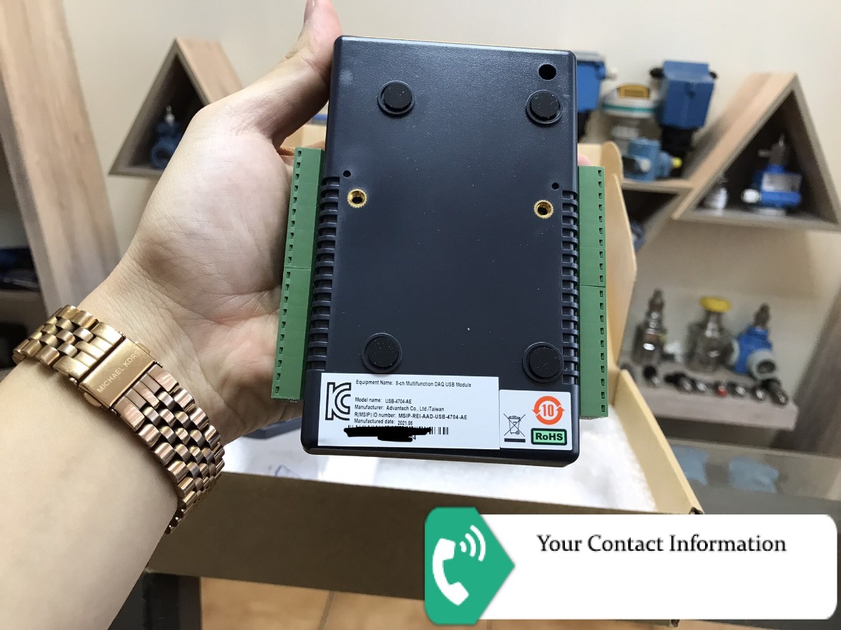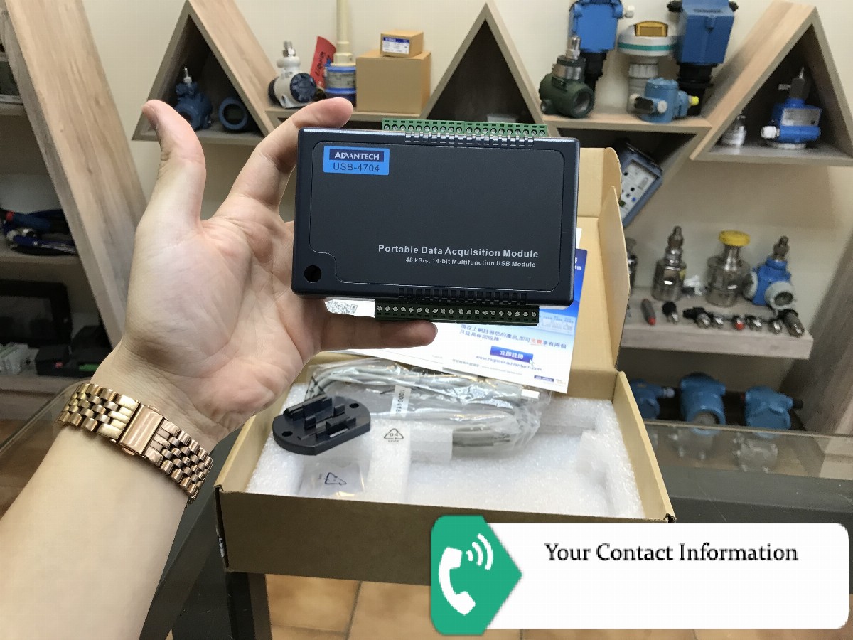 Advantech USB-4704 48 kS/s, 14-bit, 8-ch Multifunction USB Module Supports USB 2.0 Bus-powered 8 x analog input channels 14-bit resolution AI Sampling rate up to 48 kS/s 8-ch DI/8-ch DO, 2-ch AO and one 32-bit counter Portable