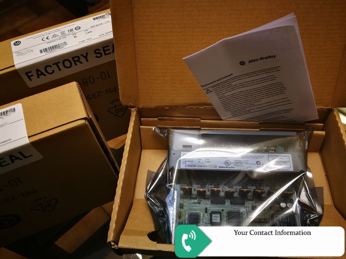 Allen Bradley 1746-NO8I SLC 500 8-Channel Analog Output Modules Number of Outputs = 8 Output Type = Current Output Range = 0 to 21.5 mA Output Coding (proportional scaling) = 0 to 32,767 Output D/A Converter Resolution = 16-bit
